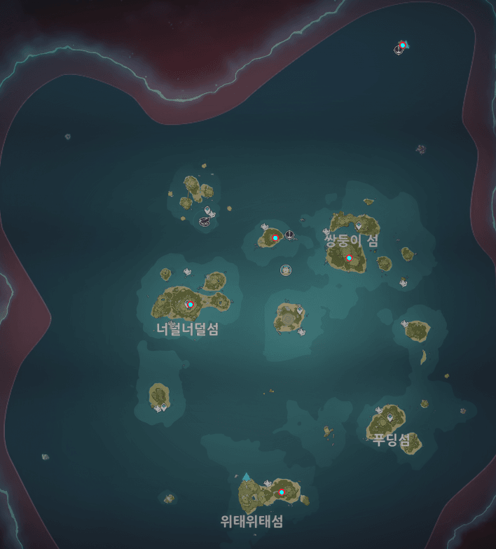 너덜너덜 섬의 벽화는 워프 포인트와 위치가 가깝습니다. 구체적인 위치는 미니맵 이미지를 참고해주세요. 워프 포인트와 위치가 가깝지만, 고도는 다릅니다. 밑으로 쭉 내려가면 동굴을 발견할 수 있는데, 동굴 주변에서 벽화를 확인할 수 있습니다.