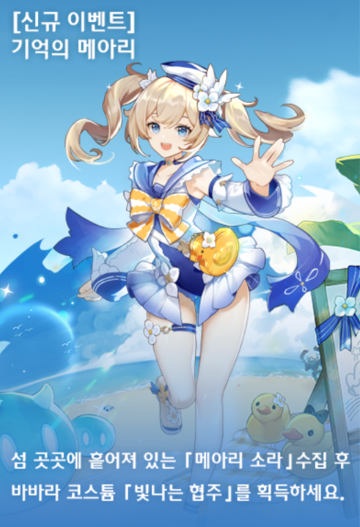 원신은 다가오는 여름을 맞이하여 여름 바캉스 이벤트를 준비했습니다. 여름 바캉스를 통해 모험으로 쌓인 피로를 풀 수 있도록 금사과 제도를 마련했습니다. 원신의 진 단장과 바바라, 클레와 함께 바닷바람을 즐기며 도도 대마왕의 정체를 밝혀봅시다.